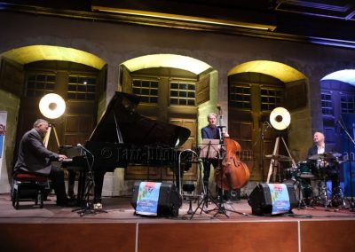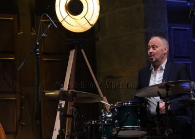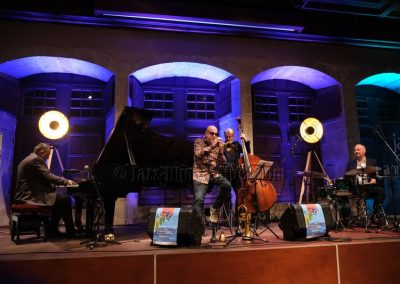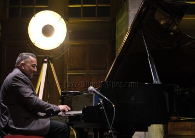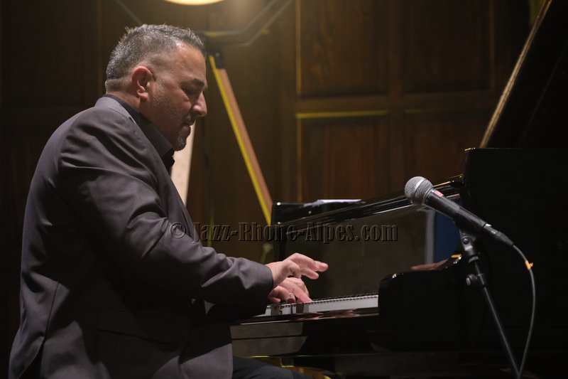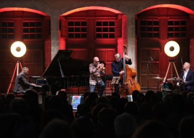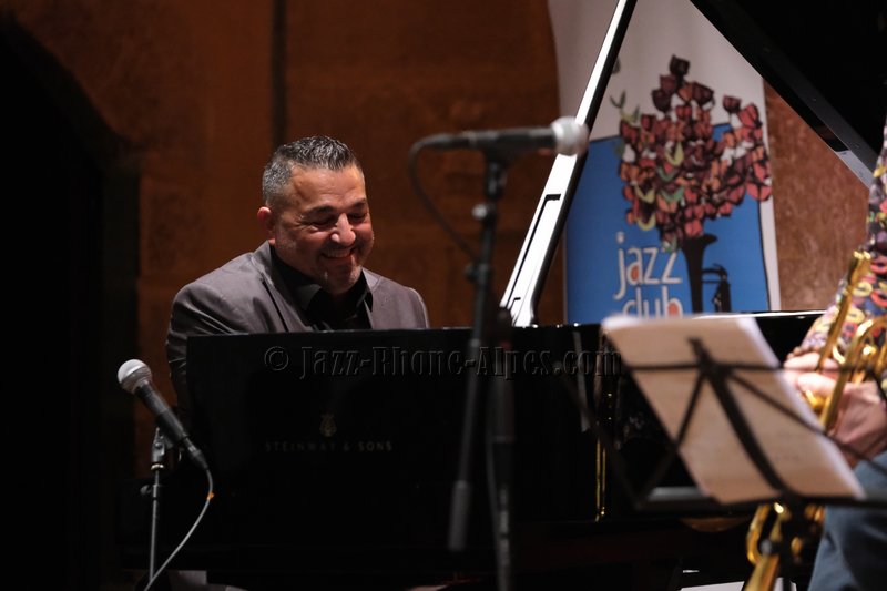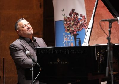 Stéphane Belmondo entre, et le quatuor prend sa vitesse de croisière sur Gypsy Voyager. Ce que l’on comprend peu à peu, c’est que Landsberger n’est pas seulement pianiste : compositeur, il l’est pleinement, avec une voix propre qui traverse la soirée comme un fil rouge. Ses origines sinti affleurent dans Romanes, dans Gypsy Night in Budapest — tendre, presque suspendue — et dans cette façon qu’il a de faire sonner le piano comme une mémoire vivante.