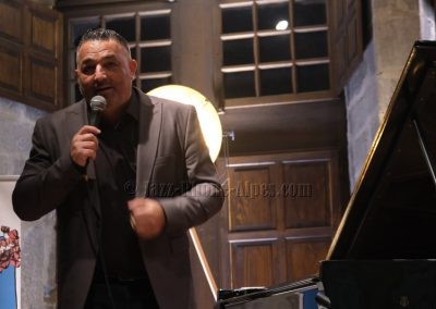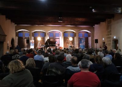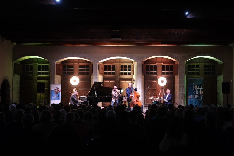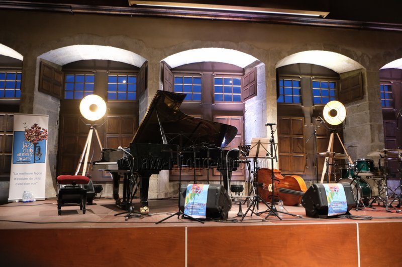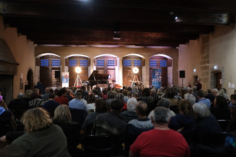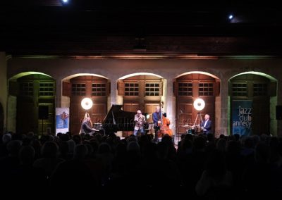 Il y a des soirs où la salle et la musique semblent faites l’une pour l’autre. Ce soir au Château-Musée d’Annecy, dans le cadre du festival Lac in Blue, la pierre ancienne des murs pluri-centenaires et le jazz de Jermaine Landsberger ont trouvé un accord naturel. Presque deux cents spectateurs ont rempli les chaises — presque : quelques-unes résistent, timidement, à l’appel.