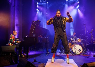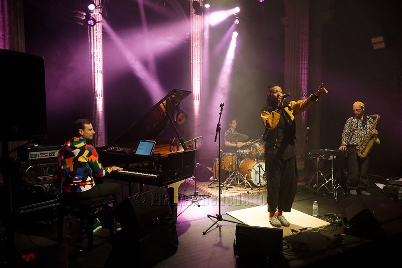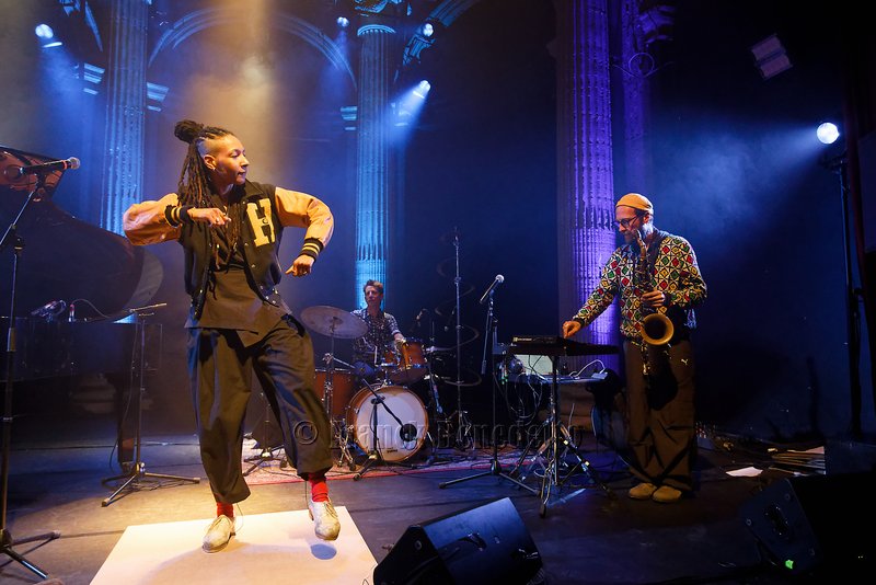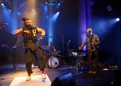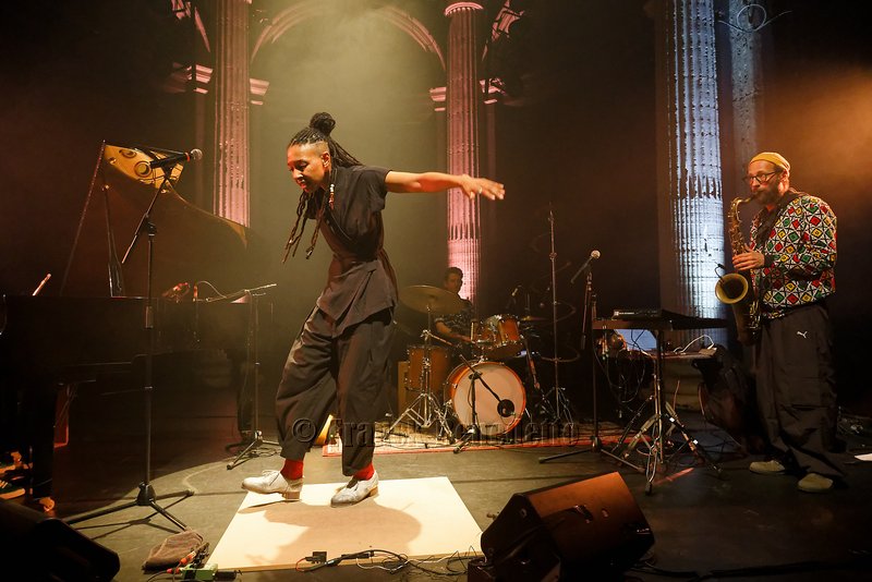 Une performance scénique unique, un moment suspendu où la scène devient un terrain d’expression rythmique et poétique où l’improvisation est reine, tout l’esprit du jazz.