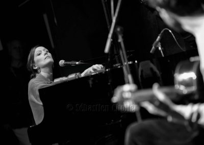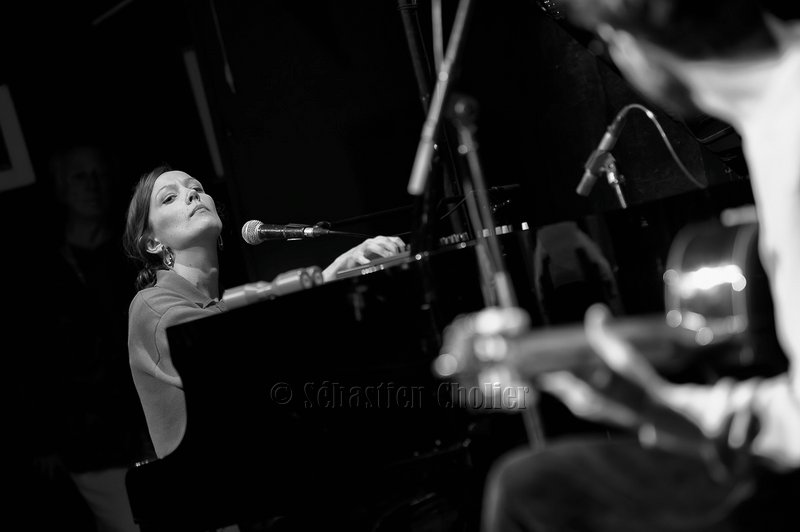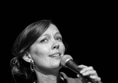 Nous avons pu entendre des compositions, surtout : Menalua, Murcia (ah oui ! les acrobaties vocales à l’unisson avec la guitare ou avec la contrebasse, doublées à la main gauche au piano ! Une merveille !), This Is Good (ou comment se retirer d’un danger quand on est une femme), Vole, Intruders (ou comment faire quand on est vécu comme un intrus). (Le désir de signification et de sincérité des paroles de Mathilde !), Rio, Opa, Somewhere, mais aussi Exit Music de Radiohead et You’re Everything de Chick Corea.