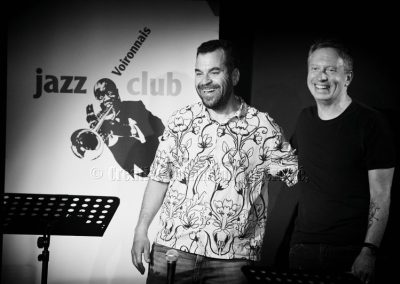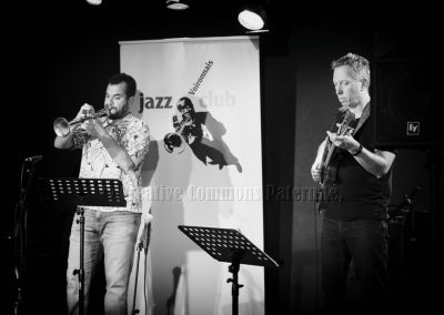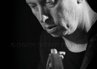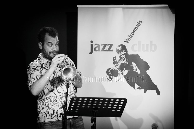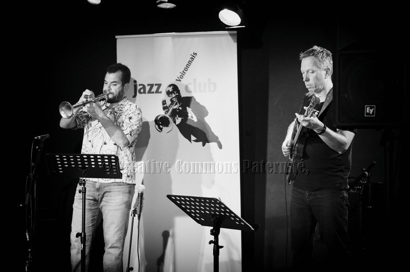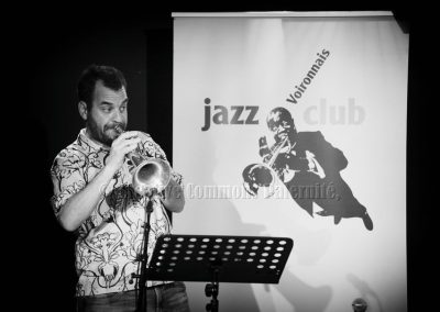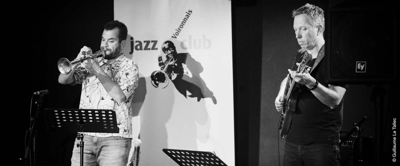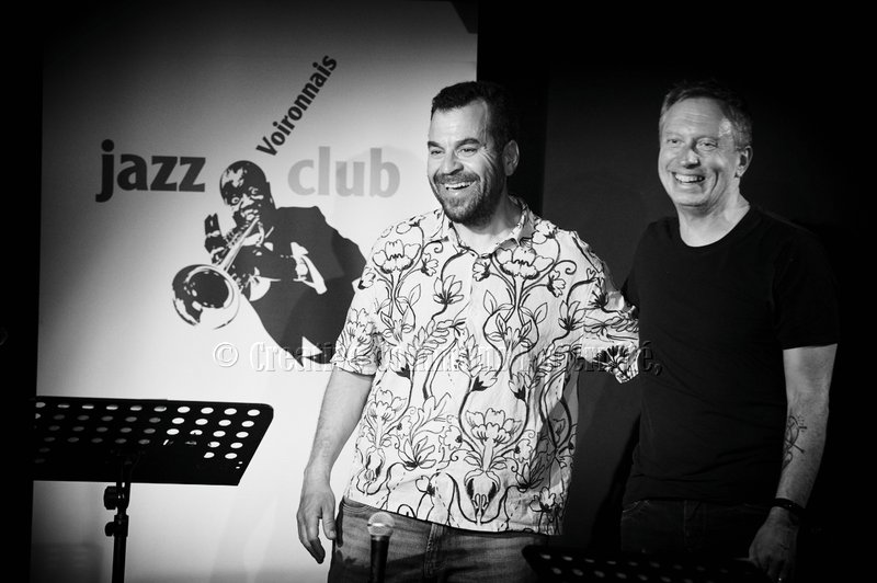 Présentation de la soirée du Jazz Club Voironnais par Mike Cheret, présentation d’importance, car ce soir Atikum est un duo. Raphaël Guyot est empêché ce soir, suite à une malencontreuse chute, mais il hante tout de même de ses compos la scène.
