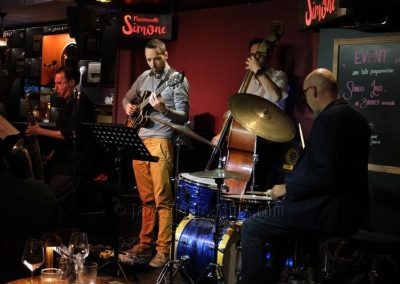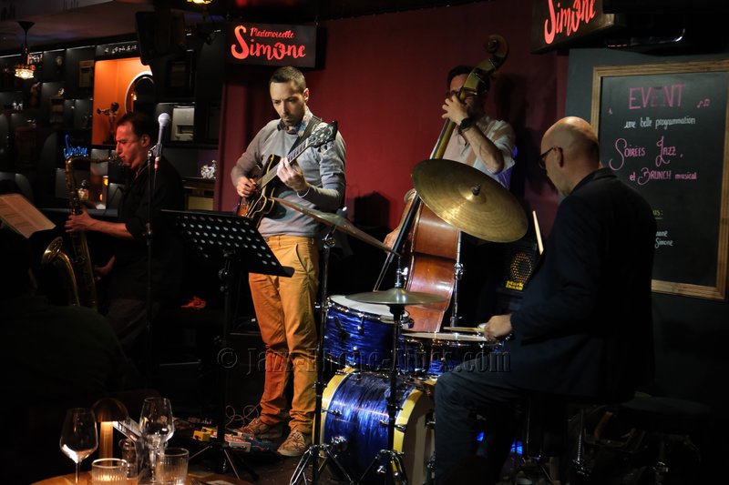 Belle soirée chez Mademoiselle Simone, où le saxophoniste Michel El Malem s’entoure d’un trio de solides musiciens de la scène régionale : Benoît Convert à la guitare, Basile Mouton à la contrebasse et Stéphane Foucher à la batterie.