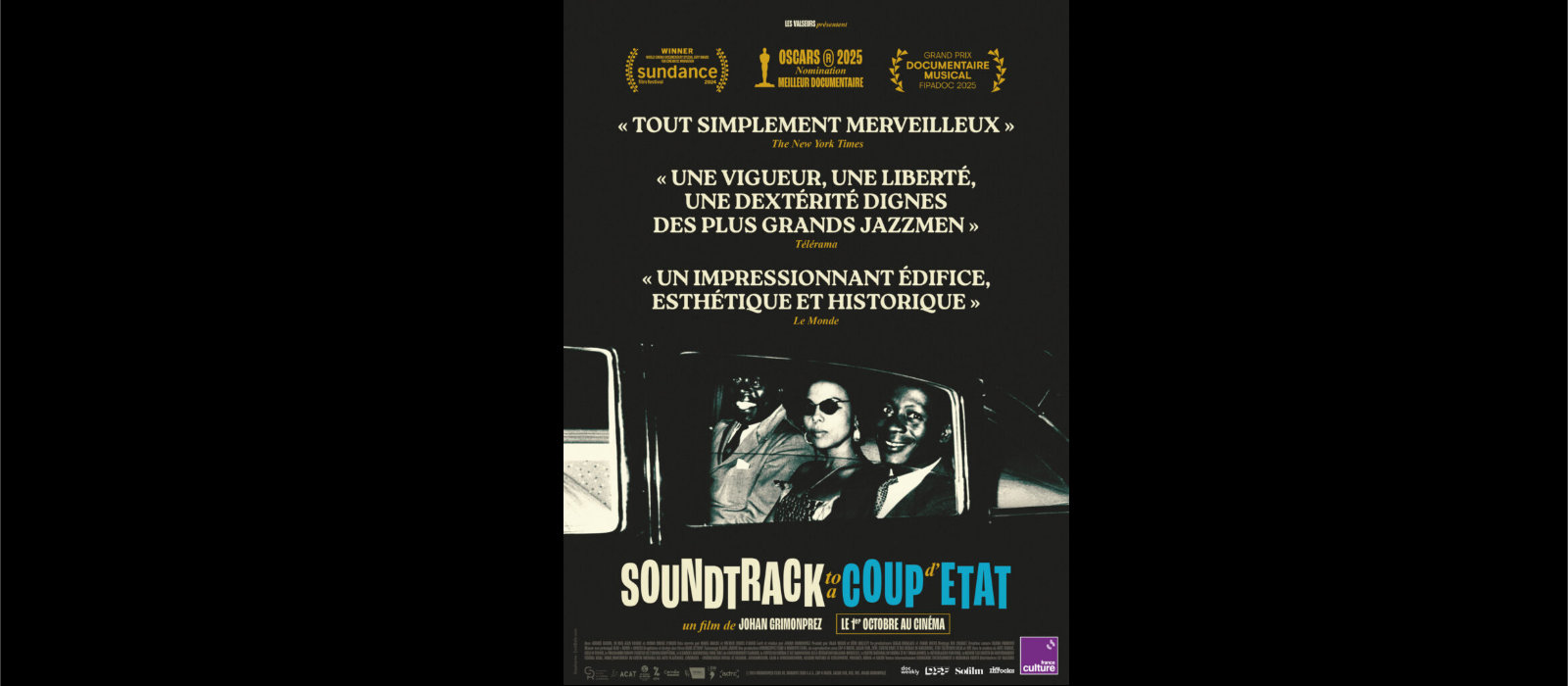 Oubliez la durée annoncée ! Vous ne verrez pas le temps passer tant vous serez emportés dans ce tourbillon kaléidoscopique fascinant et édifiant. Mention spéciale à Rik Chaubet, le monteur du film. Vous (re)découvrirez Nikita Khrouchtchev, Andrée Blouin (présente sur l’affiche), Fidel Castro ou Malcolm X alors que vous savourerez la foultitude de notes de jazz des plus grand(e)s jazz(wo)men !